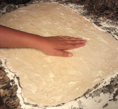 Rolling out the dough.